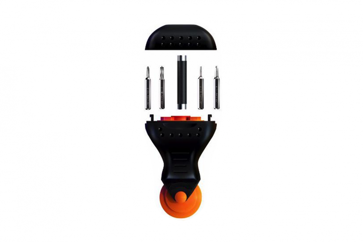Multifunkční šroubovák JAKEMY 9v1 v oranžovo-černém provedení je ideální pro rozebírání a opravy mobilních telefonů. Vyroben z odolného ABS plastu a CR-V oceli, váží pouhých 59,5 g a má kompaktní rozměry 75 × 25 × 45 mm. Obsahuje chromované bity H4×28 mm: Tri-wing Y0.8, Pentalobe 0.8, Stand off 1.5, Philips 1.5 a dva válcové nástroje OP021 a OP022. Skvělý pomocník pro precizní servisní práci.