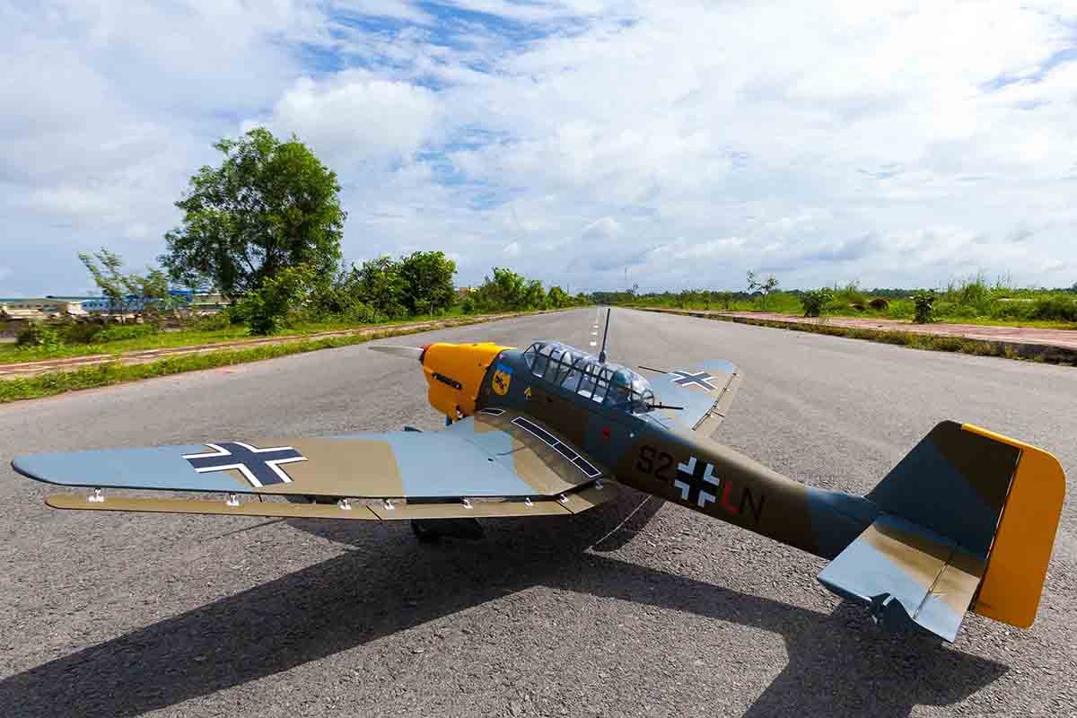 ARF stavebnice polomakety německého vojenského letadla použivaného především k bombardování. Rozpětí 229cm, pro dvoutaktní benzinový motory 38-50ccm. Součástí stavebnice je konverzní sada pro pohon elektromotorem s napájením 12S Lipo a 160-200A ESC.
