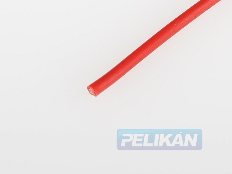Vysoce ohebný silový kabel 1,5 mm2 se silikonovou izolací v červené barvě. Lanko splétané ze 392 pramenů 0,07 mm, vnější průměr 2,7 mm, max. 48 V, trvalé proudové zatížení 23,3 A, max. 40,0 A/5 min. Vyrobeno v Německu.