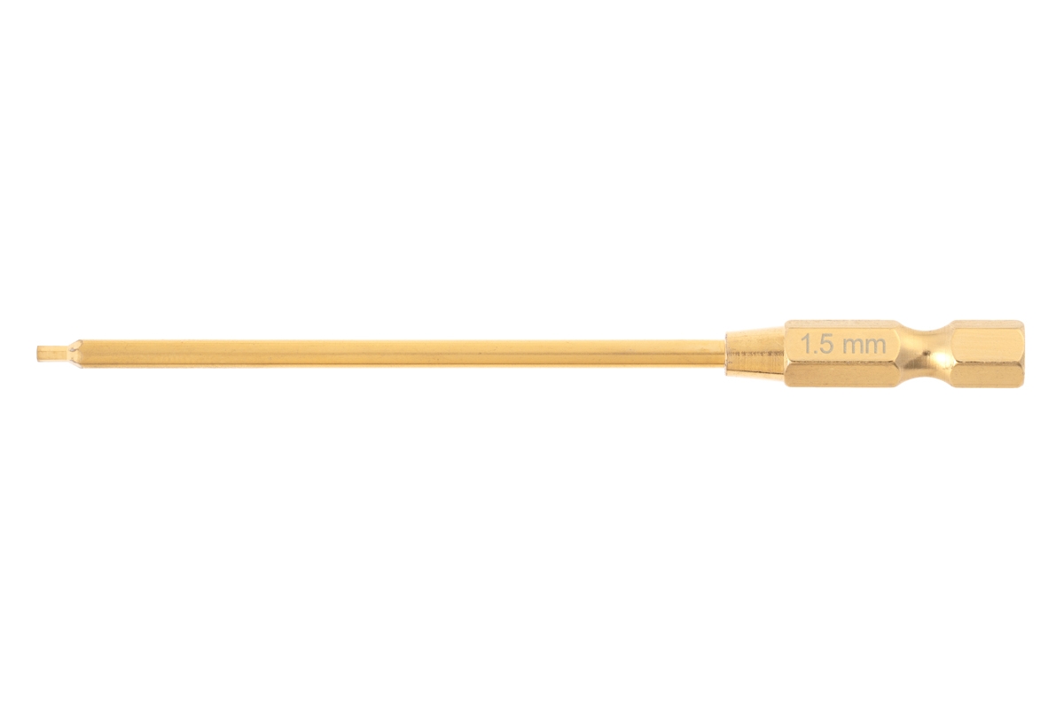 1,5mm imbusový bit s 6,35mm šestihranným adaptérem pro elektrické šroubováky, vyrobený z tvrdé oceli s titanovou povrchovou úpravou.