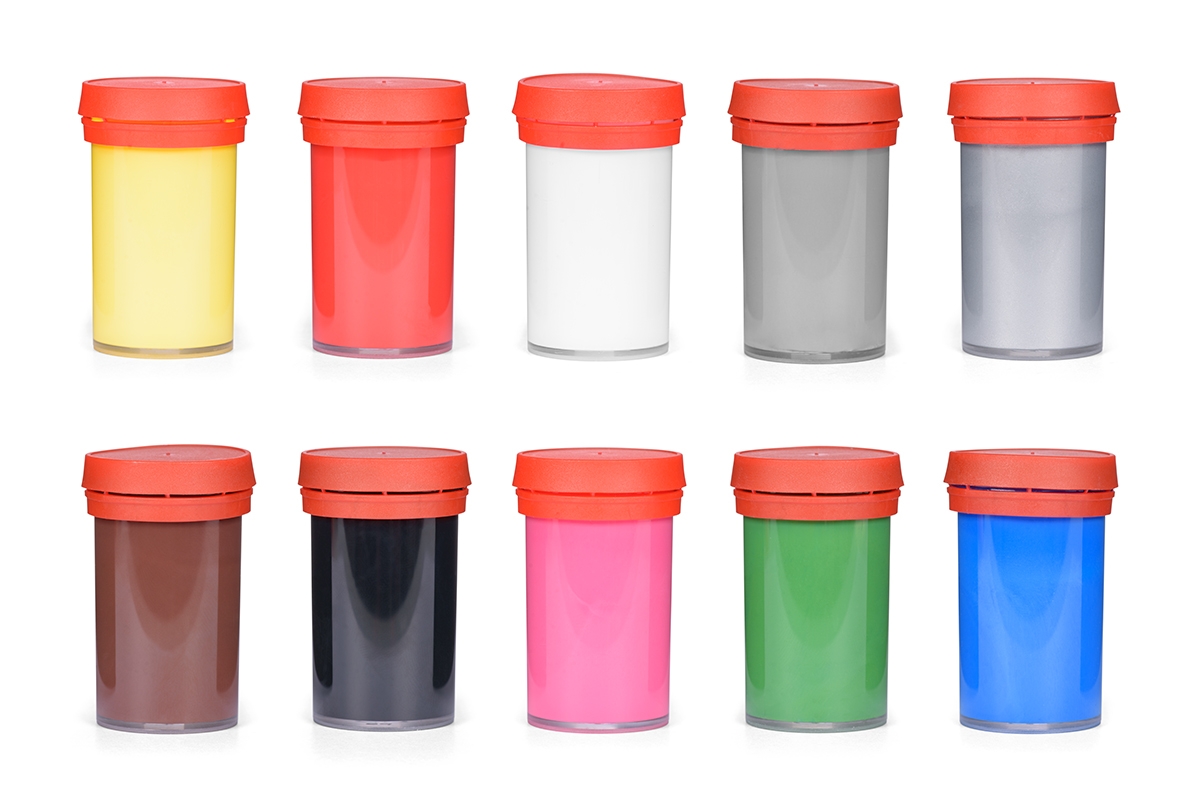 Sada desíti vodou ředitelných lesklých akrylových barev na plasty, kovy, dřevo, sklo, keramiku, beton. Balení obsahuje 10 nádobek po 16 g barvy.
