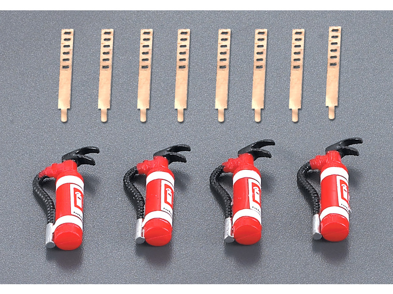 Balení obsahuje: 4 x hasičský přístroj ( nutno sestavit ), 8x mosazný pásek pro upevnění, připravené samolepky na nalepení, obrázkový návod.