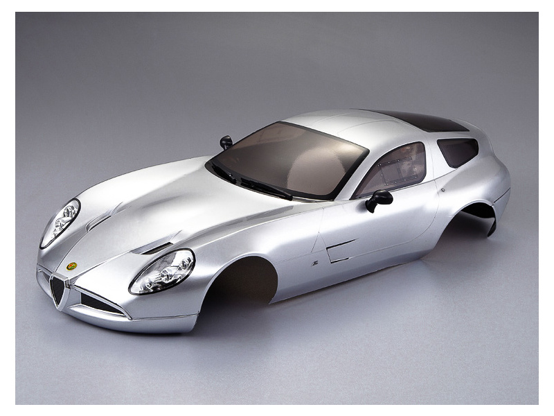 Karosérie Alfa Romeo TZ3 Corsa ve stříbrné barvě má agresivní vzhled, a je již sestavena. Jen otvory pro připevnění karosérie je nutno dodělat dle potřeby. Aerodynamické zpracování karosérie vás určitě nezklame.