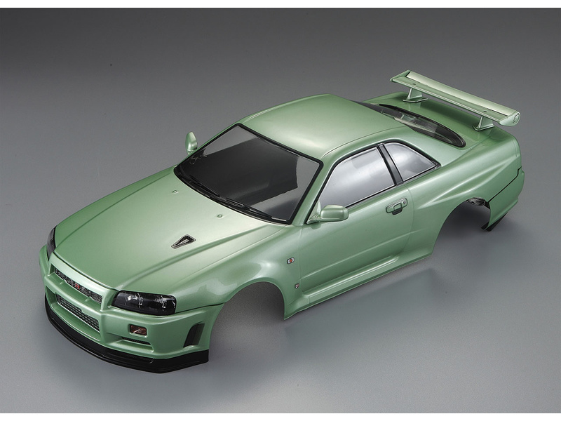 Karosérie Nissan Skyline R34 v zelené barvě je již sestavena. Jen otvory pro připevnění karosérie je nutno dodělat dle potřeby. Aerodynamické a elegantní zpracování karosérie auta vás určitě nezklame.