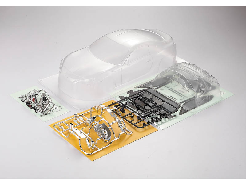 Obsahem balení je nenabarvená karosérie pro RC modely aut 1:10 Toyota 86 od Killerbody, spousta příslušenství - masky oken, sada chromovaných i plastových dílů, arch samolepek, obrázkový návod.