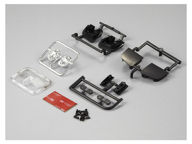Světla je potřeba odstřihat od výlisku, začistit a sestavit. Můžete si je doplnit o LED diody např. KB48099. Po připevnění ke karoserii můžete vyrazit na svou oblíbenou projížďku i večer a nemusíte se obávat, že byste do něčeho narazili.
