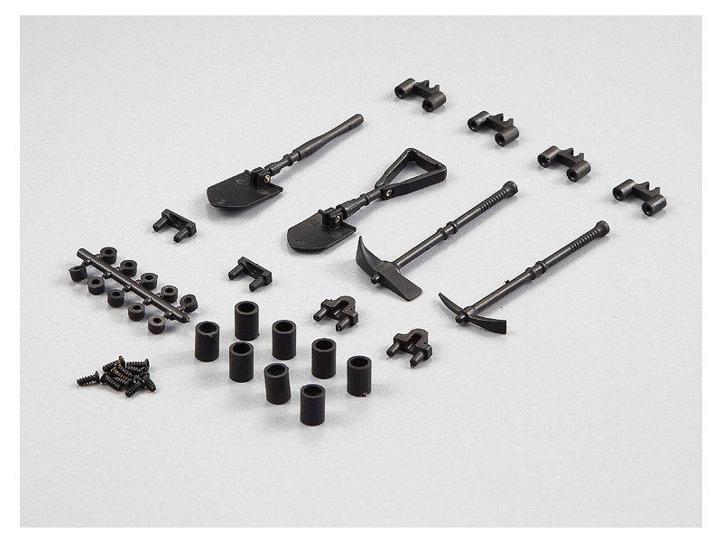 Doplněk ke karosériím RC modelů aut 1:10 od Killerbody v podobě sady nářadí. Sada je vyrobená z ABS materiálu v černém provedení. Obsahem balení je krumpáč, sekera, 2 x lopata, montážní sada.