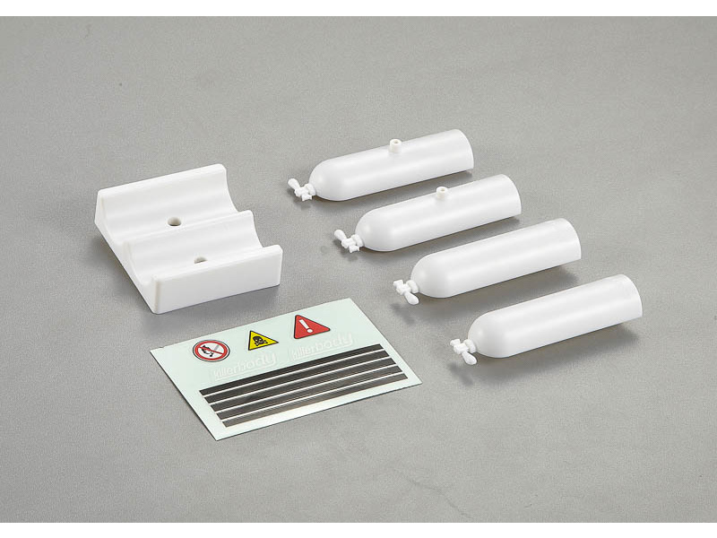 Lahve jsou vyrobený z ABS materiálu v bílém provedení. Ke karoserii pomocí montážní sady připevníte držák na láhve, do kterého vložíte tlakové láhve ( nutno je sestavit ), polepit samolepkami a můžete se bez obav vydat na cestu.