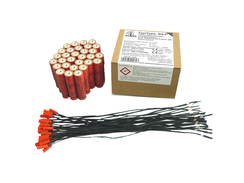 Obsahem balení je 30 raketových motorků Klima B4-P včetně el. palníků, návod k použití.