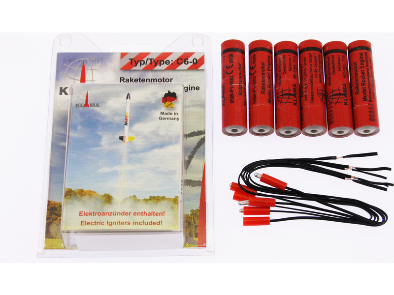 Obsahem balení je 6 raketových motorků Klima C6-0 EL včetně el. palníků, návod k použití.