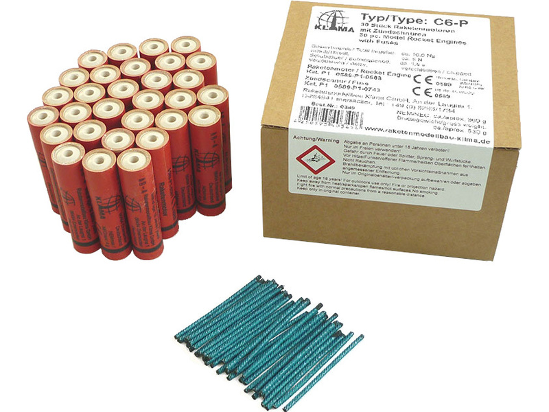 Obsahem balení je 30 raketových motorků Klima C6-P, včetně zápalnic, návod k použití.
