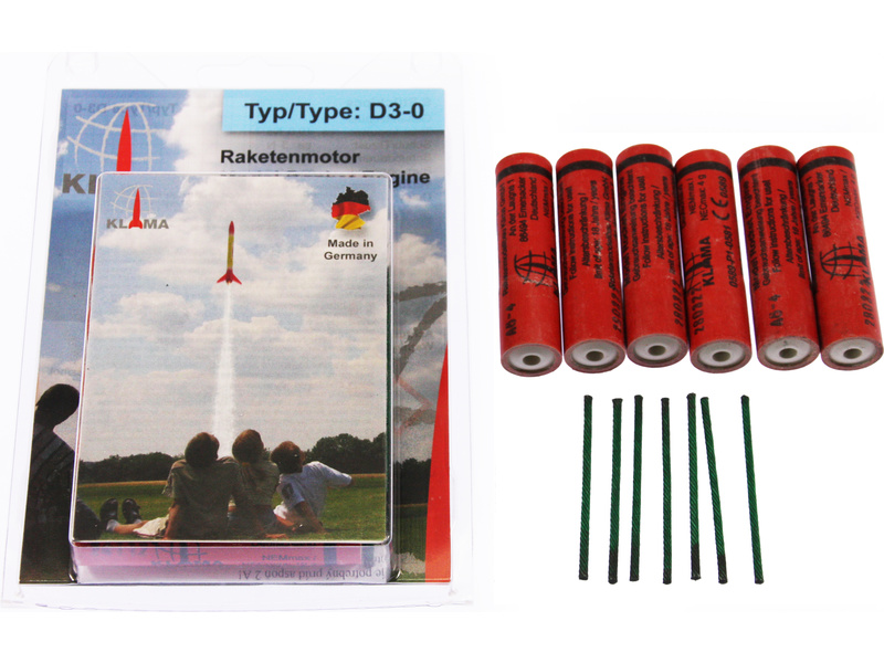 Obsahem balení je 6 raketových motorků Klima D3-0 včetně zápalnic, návod k použití.