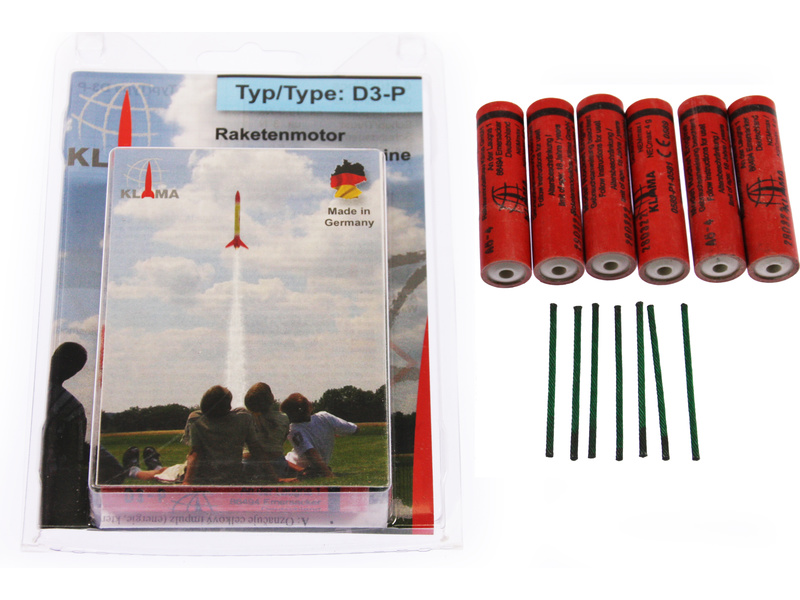 Obsahem balení je 6 raketových motorků Klima D3-P včetně zápalnic, návod k použití.