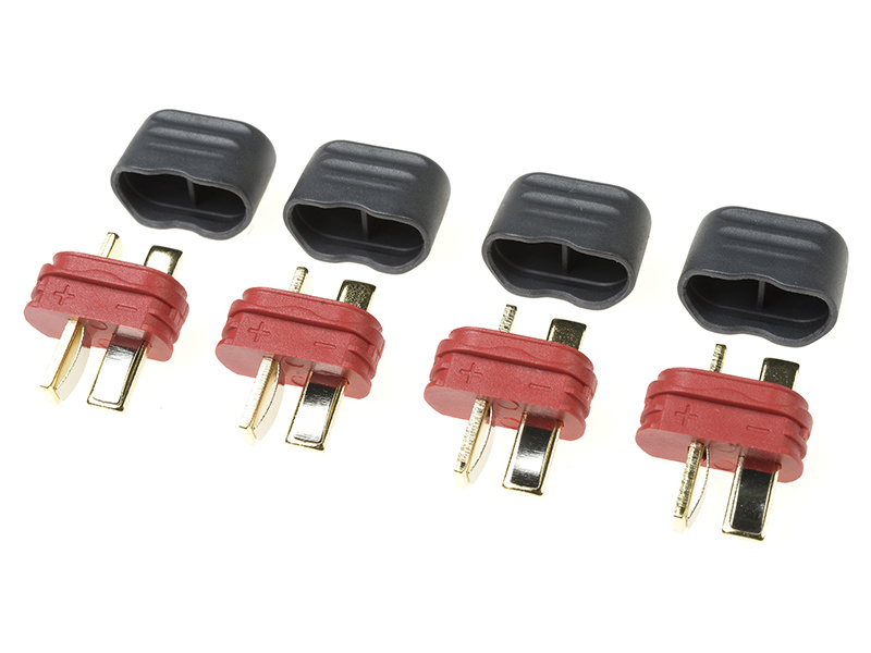 Zlacený konektor Deans přístroj (samec) s plastovým krytem pájených kontaktů. Balení obsahuje 4 páry.
