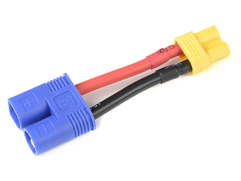 Konverzní kabel s konektory EC3 přístroj (samec) - XT-30 baterie (samice), kabel 14AWG.