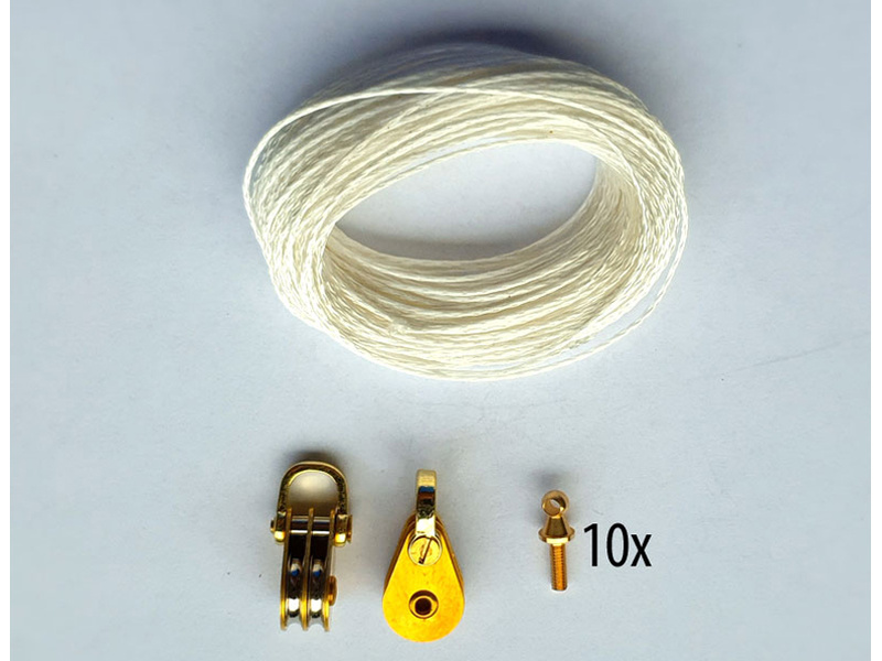 Krick Antares sada na přestavbu lanoví verze V2. Jde o doplněk k sadě KR-20371. S přídavnou sadou lze obě přední plachty spojit do dvojice. Mosazná dvojitá kladka, vodítko a odpovídající lanoví jsou součástí této konverzní sady. Díky této sadě bude mít Antares 3 plachetní navijáky.