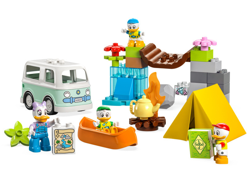 - Známé tváře – Součástí je kánoe, pojízdná obytná dodávka, textilní stan a 4 figurky LEGO® DUPLO®: Daisy od Disney a její synovci Kulík, Dulík a Bubík