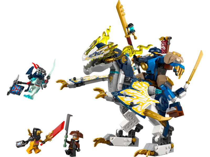 - Model robota a draka – Děti si můžou s modely hrát samostatně nebo připevnit pohyblivého robota na záda vůbec prvního robotického draka NINJAGO® a vytvořit tak Roguea a robotického dračího jezdce