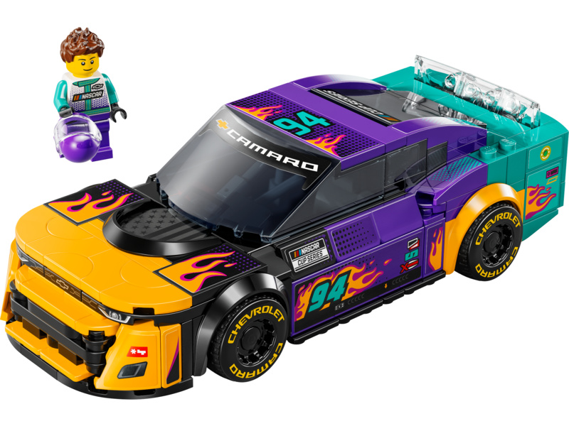 Model auta NASCAR obsahuje realistické prvky, jako je zadní spoiler, přední maska, kapota, světlomety a kola, interiér s ochrannou klecí, palubní deskou, řadicí pákou a hasicím přístrojem a autentická loga Camaro, Cup Series a NASCAR. Součástí stavebnice závodního vozu je také minifigurka jezdce NASCAR, kterou děti posadí za volant a pustí se s ní do strhujících závodů.