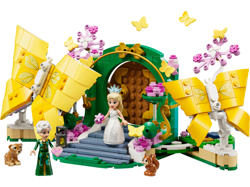 Děti oddělí obří pohyblivé motýly LEGO a odhalí svatební scénu. Tento fantastický dárek je plný detailů z filmu, včetně svatebního dortu, pozvánky ve tvaru srdce a Glindiny kytice od Fiyera. S touto stavebnicí se můžete těšit na autentické hraní na postavy: Glinda na sobě má šaty a korunku, stejně jako ve filmu, a má dvě různé tváře, které můžete vyměnit, když se její den změní z radostného na katastrofu. Součástí jsou také figurky zvířat, které se řítí scénou.