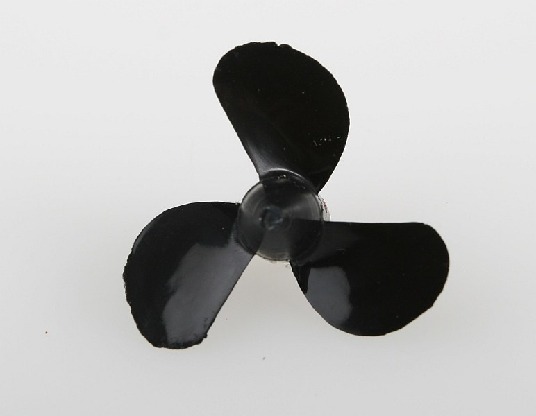 Lodní šroub třílistý pro montáž pod loď, stoupání 0,53x průměr, plast plněný skelnými vlákny, závit M4.