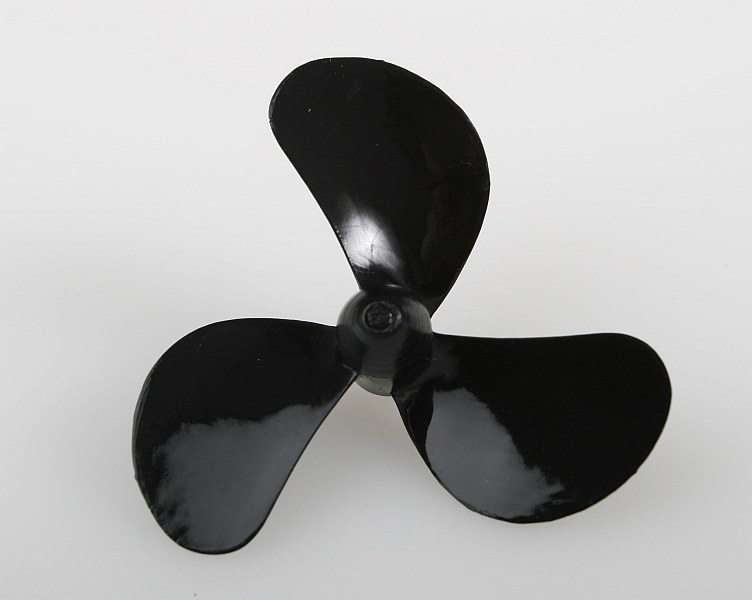 Lodní šroub třílistý pro montáž pod loď, stoupání 0,53x průměr, plast plněný skelnými vlákny, závit M4.