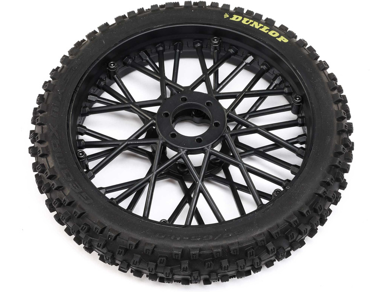 Náhradní díl pro RC model motorky Losi 1:4 Promoto-MX: kolo s pneu Dunlop MX53 přední, disk černý