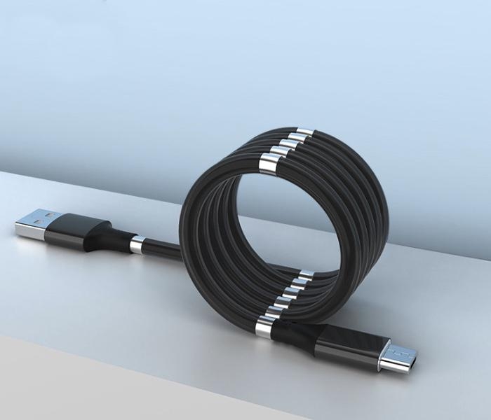 Magnetický samonavíjecí USB nabíjecí kabel (Micro USB) o délce 90 cm. Vyroben z odolného TPE materiálu s vodiči 50/0.08*2tc + 15/0.08*2tc pro stabilní přenos. Výstup 5V/2,4A umožňuje rychlé nabíjení i přenos dat. Obsahuje 12 magnetů pro snadné navíjení a úhledné uskladnění bez zamotání. Praktický a spolehlivý doplněk na cesty i domů.