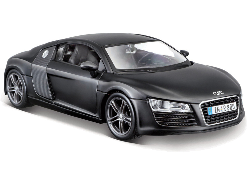 Kovový model auta 1:24 Maisto 31281 Audi R8 nejen pro sběratele. Model je v detailním provedení a má otevíratelné dveře. Barva modelu je černá matná a je přibližně 17 cm velký.