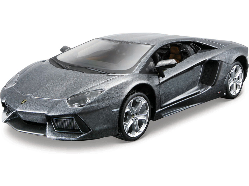 Kovový model auta 1:24 Maisto 39234 Kit Lamborghini Aventador LP700-4 nejen pro sběratele. Má otevírací dveře a kapotu. Model je ve verzi Kit určené k sestavení. Barva modelu je šedá metalíza a je přibližně 17 cm velký.