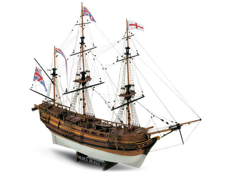 Stavebnice neplovoucího modelu MAMOLI H.M.S. Beagle v měřítku 1:64 z roku 1817. Loď britského královského námořnictva působila jako pobřežní stráž a po odstranění děl byla použita k vědeckým účelům v Indickém a Tichém oceánu. V balení jsou dřevěné díly, lišty a množství kování, lanoví, plány atd.