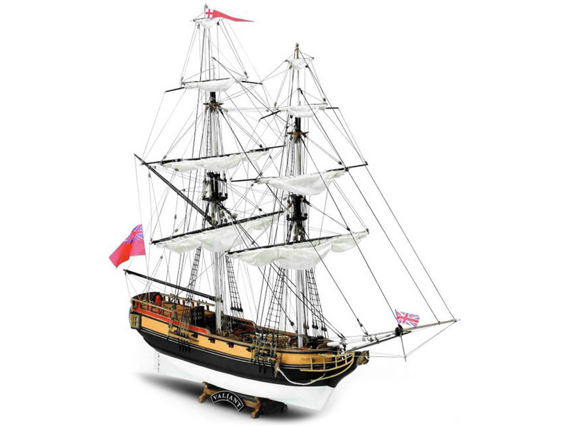Stavebnice neplovoucího modelu historické plachetní lodi H.M.S. Valiant z roku 1762, v měřítku 1:66. Dvoustěžňová briga s dvanácti děly operovala na severoamerickém pobřeží, kde bojovala proti francouzským a španělským lodím, plavícím se do Evropy.V balení jsou dřevěné díly, lišty, kování, lanoví, plány atd.