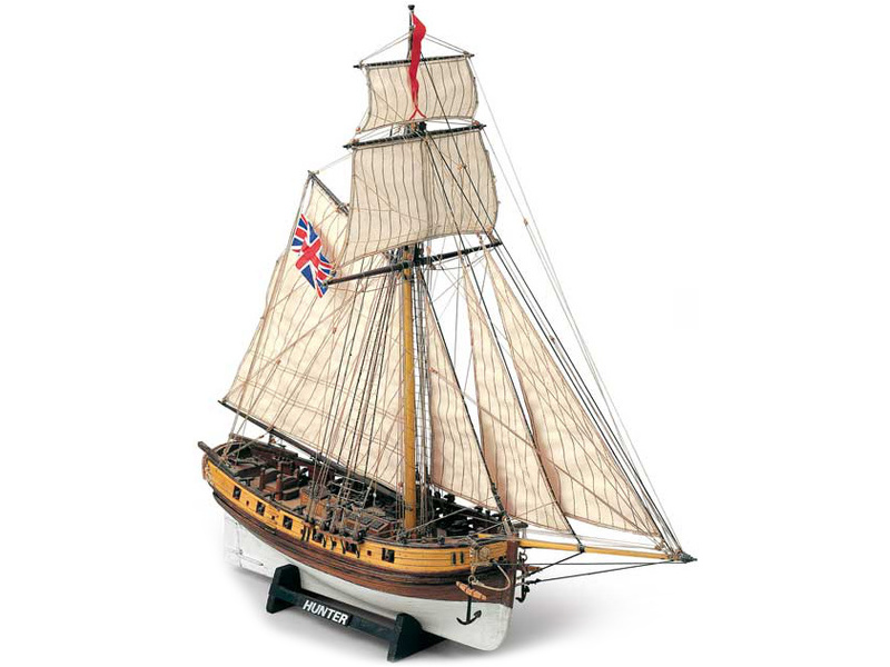 Stavebnice neplovoucího modelu MAMOLI Hunter kutr v měřítku 1:72 z roku 1797. Loď královského námořnictva byla postavena proti pirátům a pašerákům, odtud název Hunter - lovec. Ve výzbroji bylo 12 děl. V balení jsou dřevěné díly, lišty a množství kování, lanoví, plány atd.