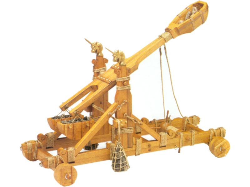 Stavebnice modelu Normanského katapultu v měřítku 1:12. Normanský katapult z 11. století lze považovat za předchůdce moderních minometů. Tento typ katapultu byl hojně využíván až do nástupu děl. Konstrukce se skládá z předem nařezaných dřevěných dílů a kovových litých ozdob.