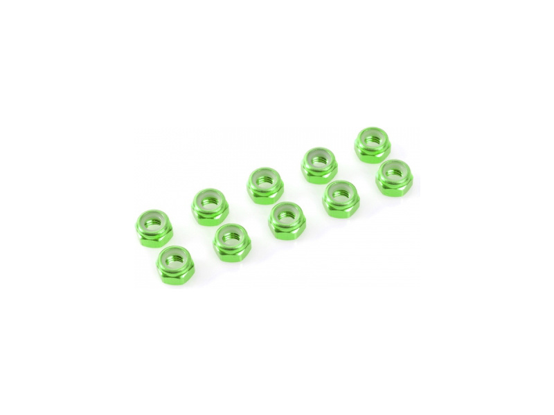 Samojistná hliníková matice M3 zeleně eloxovaná. Balení obsahuje 10 ks.