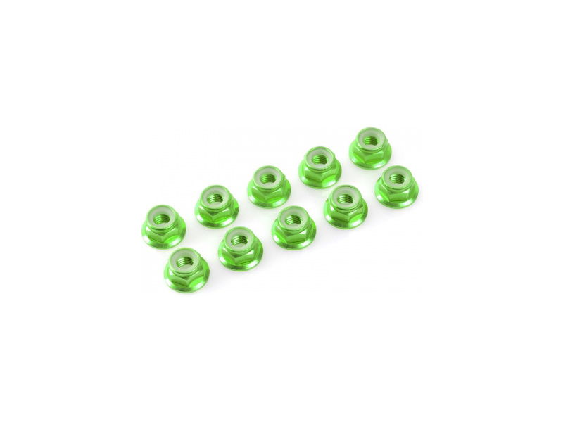 Samojistná hliníková matice M5 s přírubou zeleně eloxovaná. Balení obsahuje 10 ks.