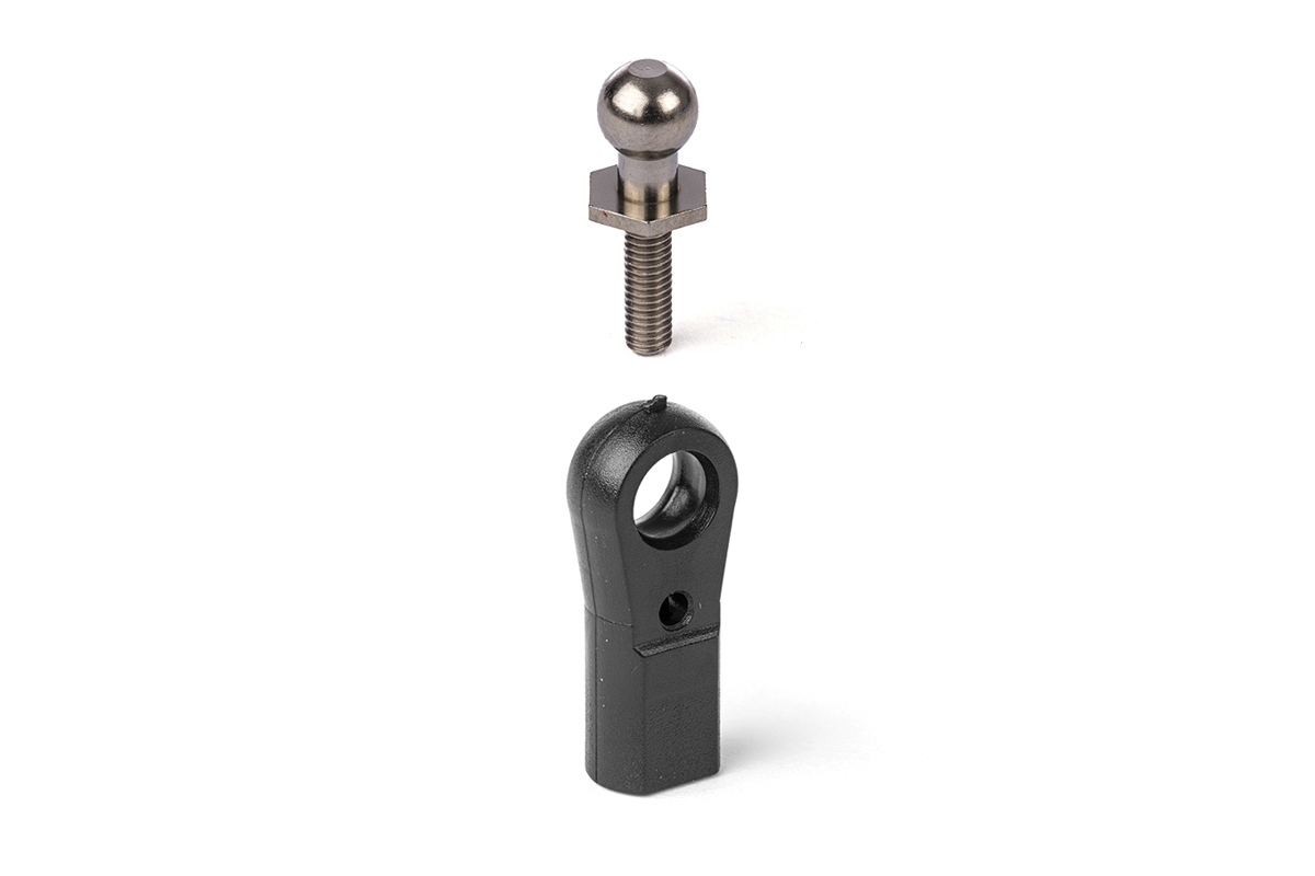 Nylonový kulový čep pro velké modely letadel a modely lodí nebo aut poháněné benzinovým motorem. Je téměř nemožné rukou vycvaknout kuličku z nylonového pouzdra, ale přesto je pohyb v něm velmi hladký. Poniklovaná kulička s vnějším průměrem 6mm. M3 spojova