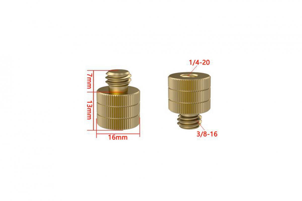 Redukce z mědi 3/8" šroub na 1/4" závitový otvor v elegantní zlaté barvě je praktickým doplňkem pro fotografické a video vybavení. Umožňuje snadné připojení příslušenství s odlišnými závity. Vyrobena z odolné mědi, váží pouze 5 g a nabízí dlouhou životnost i při častém používání. Ideální pro stativy, držáky a další zařízení. Cena je uvedena za jeden kus.