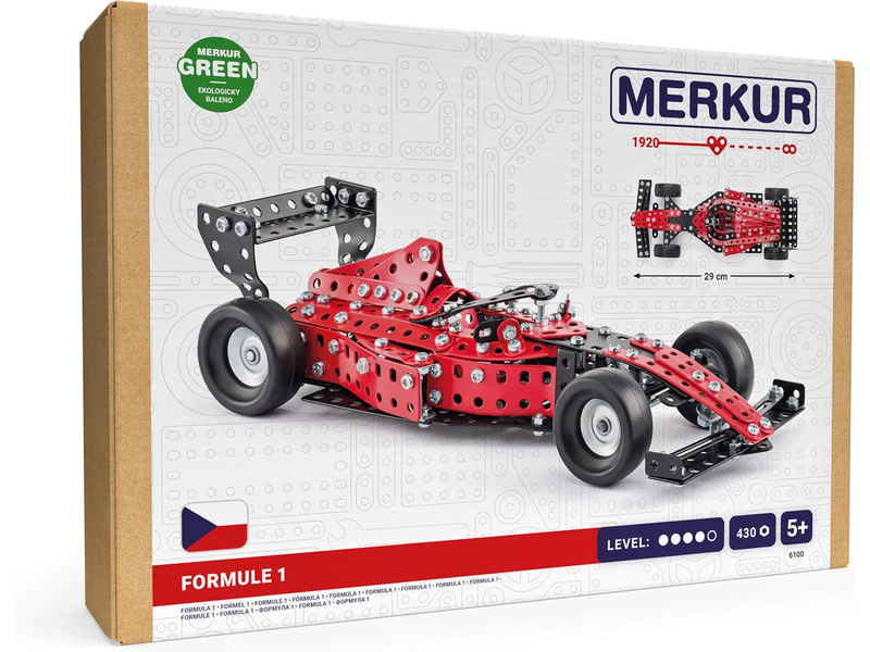 Klasická česká stavebnice Merkur - Formule. V balení najdete podrobný návod, Merkur sadu nářadí a unikátní Merkur díly. Merkur díly jsou univerzální a tak vás neomezí v jakékoli modifikaci a nápadu. Stavebnici tak můžete sestavit podle návodu nebo podle svých představ.