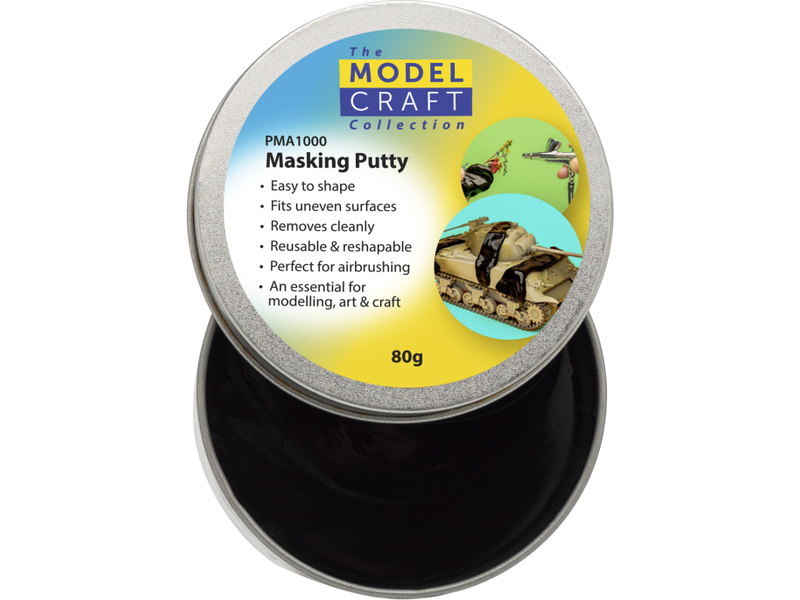 Modelcraft maskovací tmel na silikonové bázi, ideální pro maskování při barvení. Je navržen tak, aby se dal snadno odstranit bez poškození natřených ploch. Tento všestranný tmel lze válečkovat, řezat a tvarovat pro jakýkoli úkol.