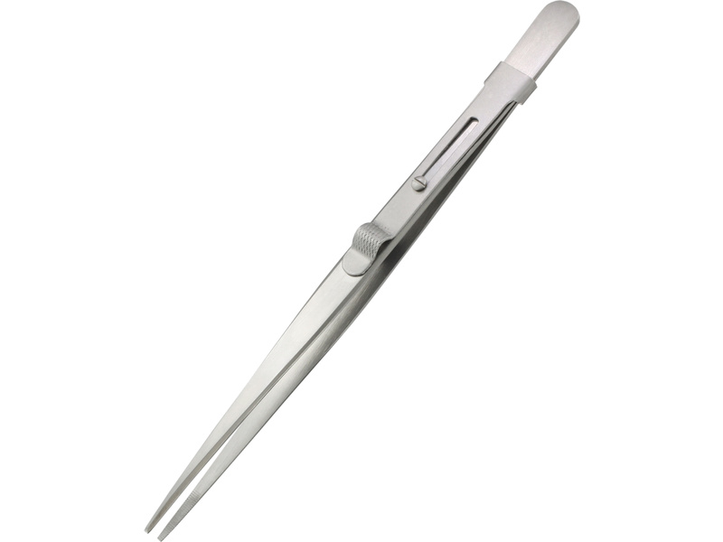 Modelcraft ocelová nerezová pinzeta samosvorná je ideální pro dosažení do nepřístupných míst, při držení velmi malých dílů a součástí aniž by bylo potřeba čelisti tisknout k sobě. Jemné vroubkované čelisti bezpečně drží i drobné předměty. Posuvníkem lze nastavit sílu přidržení. Délka 160mm, šířka 10mm, hmotnost 24g.