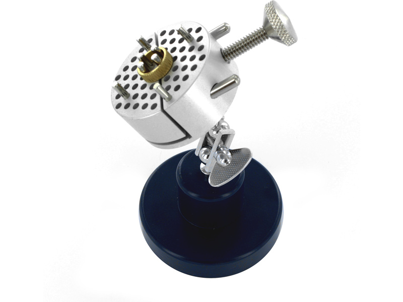 Modelcraft univerzální držák se stojánkem je určen pro držení menších součástí při malování, řezání, rytí nebo lepení. Upínací hlava o průměru 50 mm může být odstraněna ze základny a v případě potřeby namontována na větší stolní svěrák. Sada obsahuje 8 ocelových kolíků, které mohou být umístěny kdekoli na hlavě.