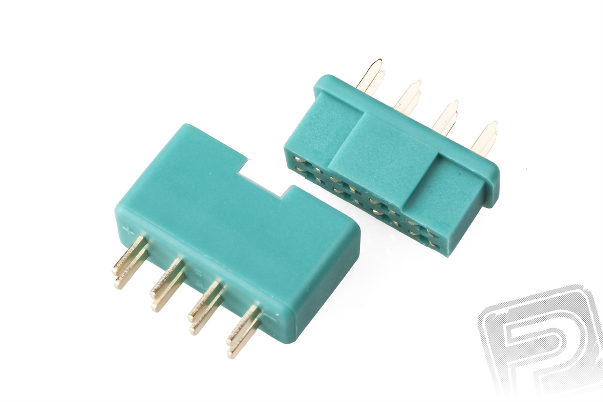 Vysoce kvalitní osmikolíkový konektor MPX8 se zlacenými pájecími kontakty. Proudová zatížitelnost: 6A/24h, 8A/5min, 10A/3s. Ideální pro propojování servokabelů mezi křídlem a trupem, lze doplnit pájecí deskou 8GR71294-1 pro snadné zapojování. Pár zásuvka/zástrčka. Vyrobeno v Německu.