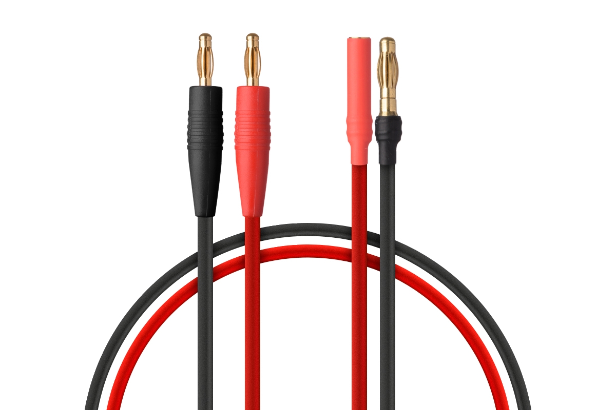Nabíjecí kabel se 4 mm zlacenými banánky na straně nabíječe a zlacenými konektory 4 mm (#7946).