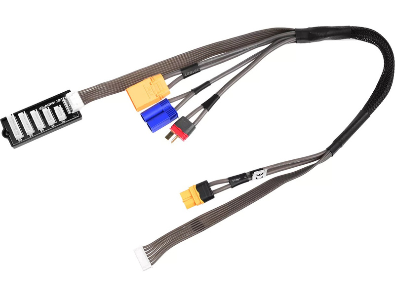 Nabíjecí kabel Pro s konektorem XT-60 baterie (samice) a paralelními kabely s konektory Deans/EC5/XT90 (samec / přístroj), včetně balanční desky s konektory JST-XH 2-6S. Délka 40cm.