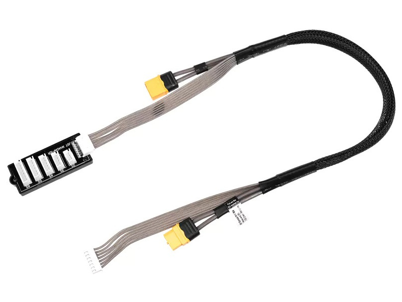 Nabíjecí kabel Pro s konektorem XT-60 baterie (samice) a XT-60 přístroj (samec), včetně balanční desky s konektory JST-XH 2-6S. Délka 40cm.