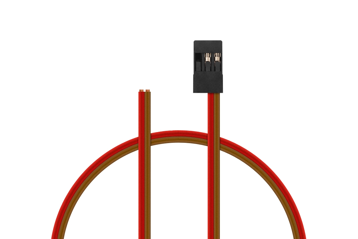 Plochý dvoužilový Rx napájecí kabel s konektorem JR o délce 300 mm s PVC izolací, průřez vodičů 0,25 mm2.