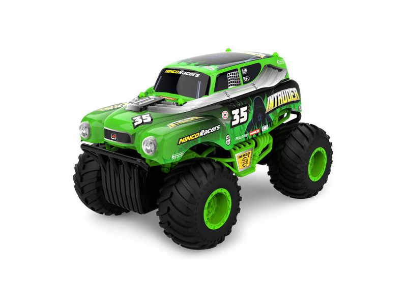 NINCORACERS Intruder je RC hračka na dálkové ovládání v měřítku 1:16. Jedná se o jeden z nejoblíbenějších aut typu monster truck s velkými širokými koly a vysokým podvozkem. Karoserie je typická pro americké závody Monster Jam. Karoserie byla konstruována tak, aby odolala dětským hrám. Spolehlivý volantový vysílač pracuje na frekvenci 2.4 GHz. Auto jede rychlostí až 15 km/h a je poháněno Li-Ion akumulátorem, který nabijete přiloženým USB nabíječem.