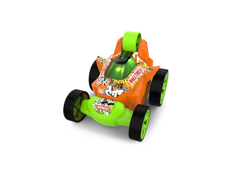Auto na dálkové ovládání NINCORACERS Rolltrex oranžový s LED osvětlením, otočnými předními koly a gumovými pneumatikami. Auto umožňuje jízdu po zadních kolech Wheelie a speciální funkci rotace předních kol. Provoz auta je na tužkové baterie. Vysílač 2.4 GHz.