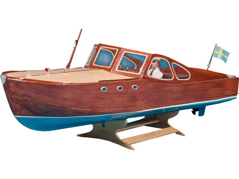 Stavebnice modelu lodi Nordic Claas Boats Solö Ruff Daycruiser v měřítku 1:10, vzor je z roku 1965. Model je dlouhý 720mm a lze jej sestavit jako neplovoucí statickou maketu, nebo jej můžete osadit vlastní RC výbavou a vypustit na hladinu.
